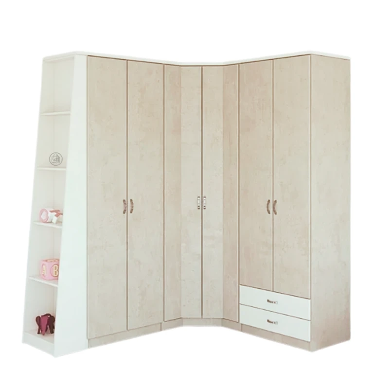 ארון פינתי מרווח בעיצוב מודרני ונקי, המיוצר בהתאמה אישית על ידי חברת ר.א. ריהוט. דגם כינרת 26 משלב מספר יחידות פונקציונליות, כולל מדפי צד, דלתות פתיחה ומגירות, ומציע פתרון אחסון מושלם לפינת החדר – תוך ניצול חכם של שטח הפינה.