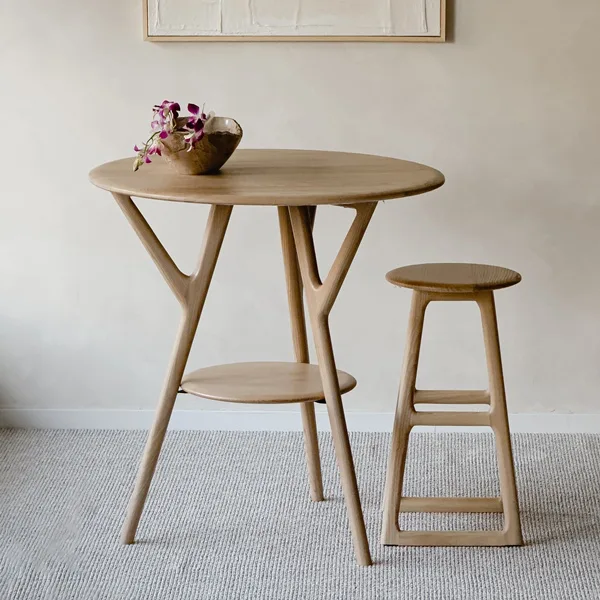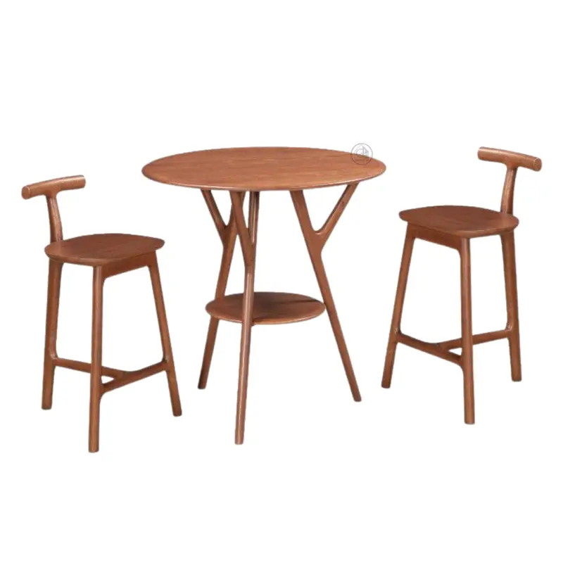 שולחן בר עגול בעיצוב נקי ומודרני, עשוי עץ מלא בגימור איכותי. מתאים לחללי אירוח, פינות אוכל קטנות או מטבחי בר – ומשדר חמימות, יציבות וסטייל טבעי.