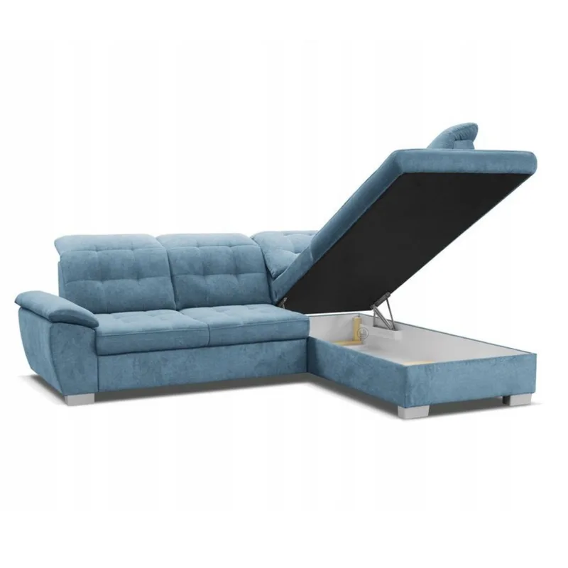 ספה פינתית גדולה עם מנגנון מיטה וארגז אחסון, נפתחת למיטה זוגית. עיצוב מודרני, נוח ומרשים. מתאימה לחללי מגורים ומעניקה פתרון אירוח חכם עם נוחות גבוהה ונוכחות מרשימה.
