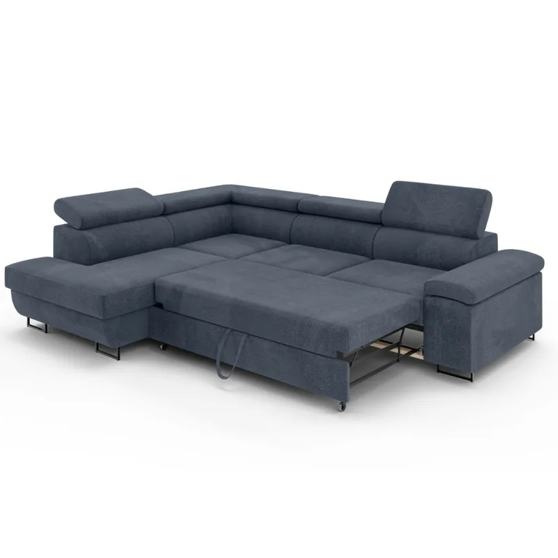 ספה פינתית גדולה עם מנגנון מיטה וארגז מצעים, בעיצוב מודרני ונקי. מתאימה לחללי מגורים ומעניקה פתרון אירוח מושלם עם נוחות גבוהה ונוכחות מרשימה.