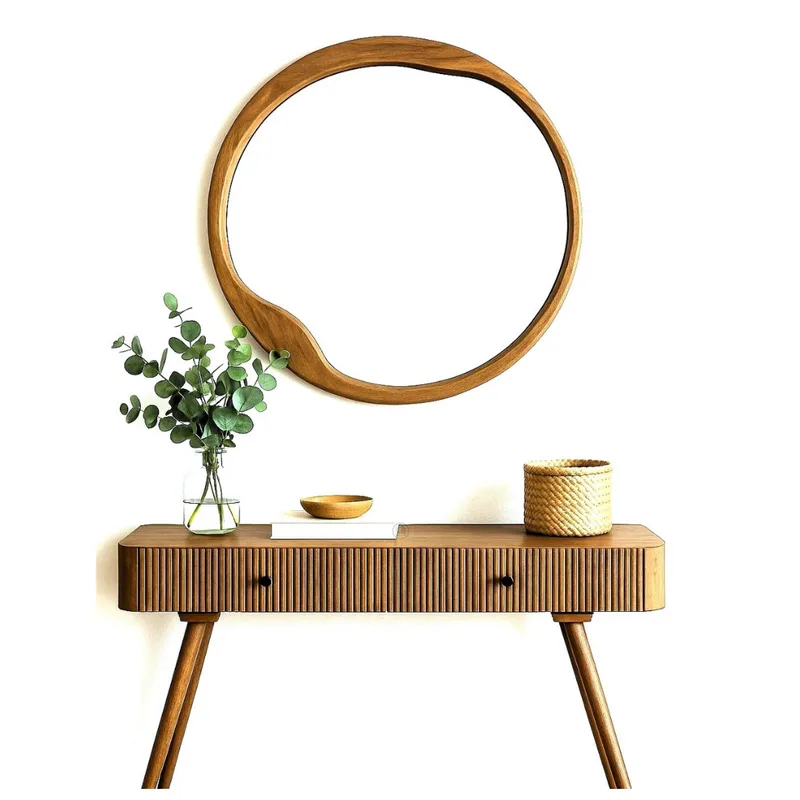 מראה עגולה אמורפית | דגם עץ מלא