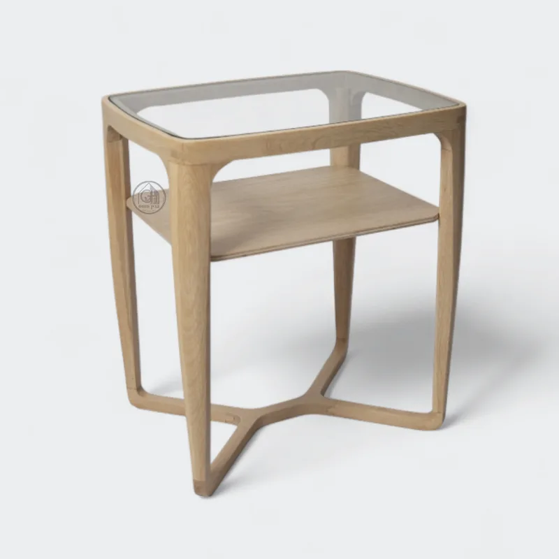שידת צד בעיצוב מודרני ונקי, עשויה מעץ ASH איכותי עם פלטת זכוכית עליונה.
