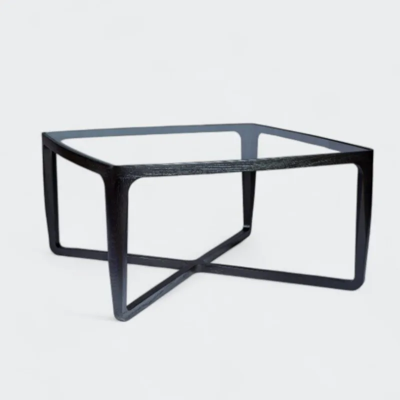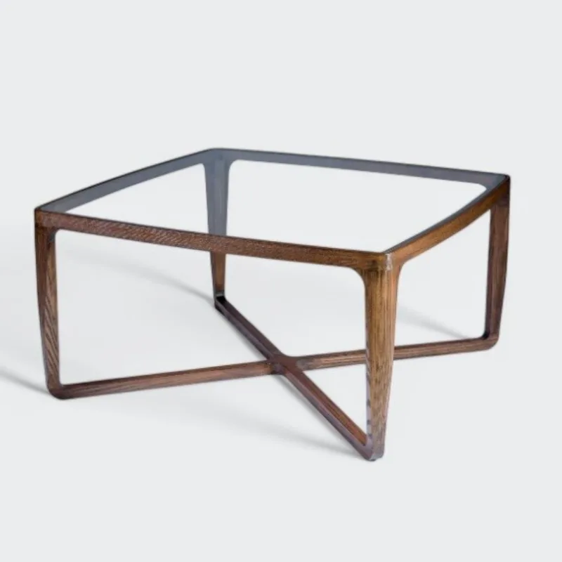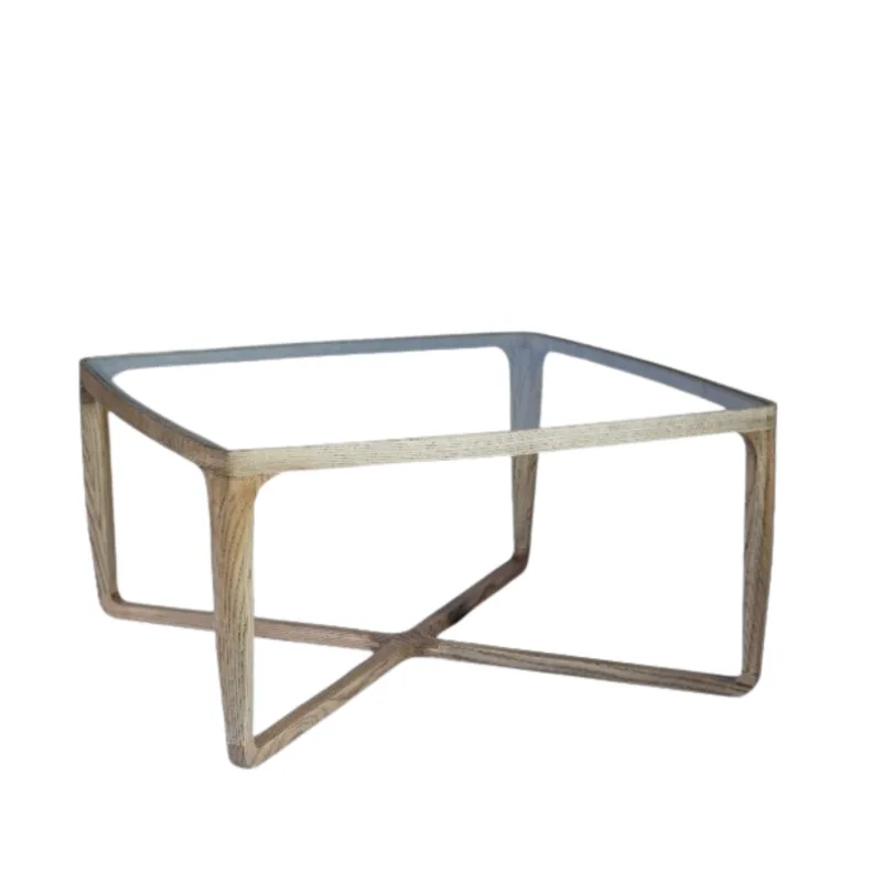 שולחן קפה מרובע בעיצוב מודרני ונקי, עשוי עץ ASH איכותי עם פלטת זכוכית עליונה.