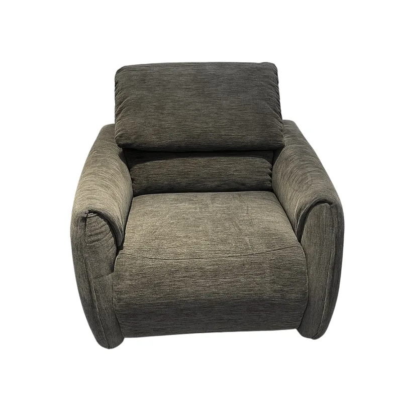 כורסה מעוצבת עם ריקליינר ידני ומשענת ראש מתכווננת.