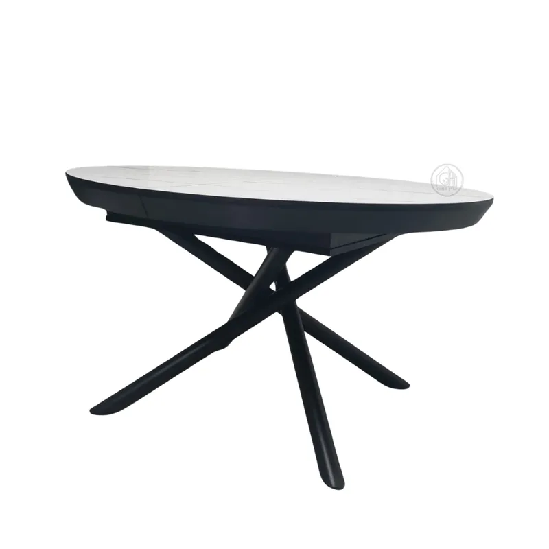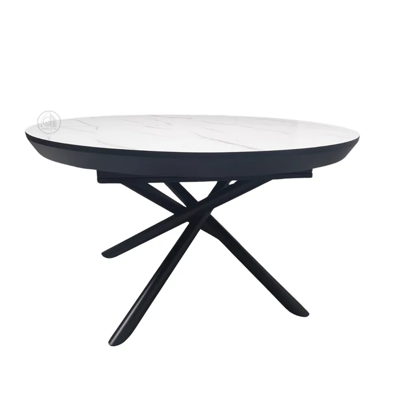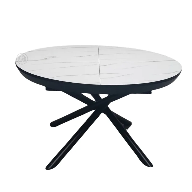שולחן אוכל עגול בעיצוב מודרני. פלטת השולחן עשויה פורמייקה איכותית, המעניקה עמידות גבוהה ומראה נקי ואלגנטי