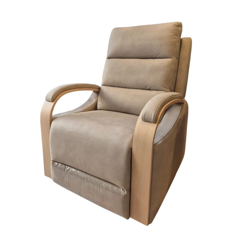 כורסת קימה חשמלית מרופדת; זמינה בבד בז’ (V‑01) ובבד אפור (V‑02).