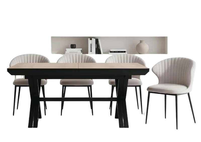 סט פינת אוכל מעוצב הכולל שולחן דגם אקסו ו-4 כיסאות דגם ליב.