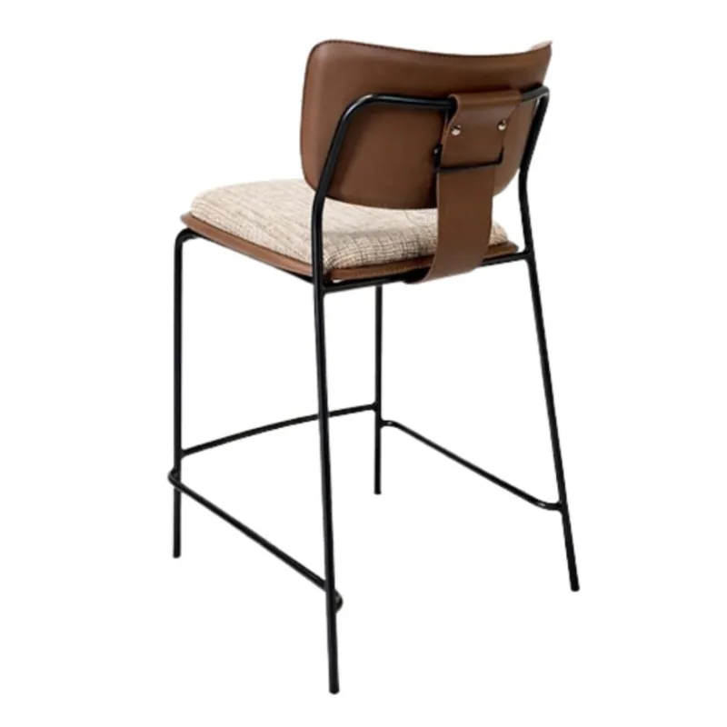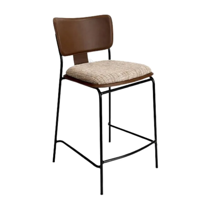 כיסא בר בעיצוב מודרני עם קווים נקיים ושלדת מתכת יציבה. שילוב גב דמוי עור עם מושב טקסטיל מרופד יוצר מראה אלגנטי לצד נוחות ישיבה גבוהה - מתאים לאי מטבח או בר ביתי.