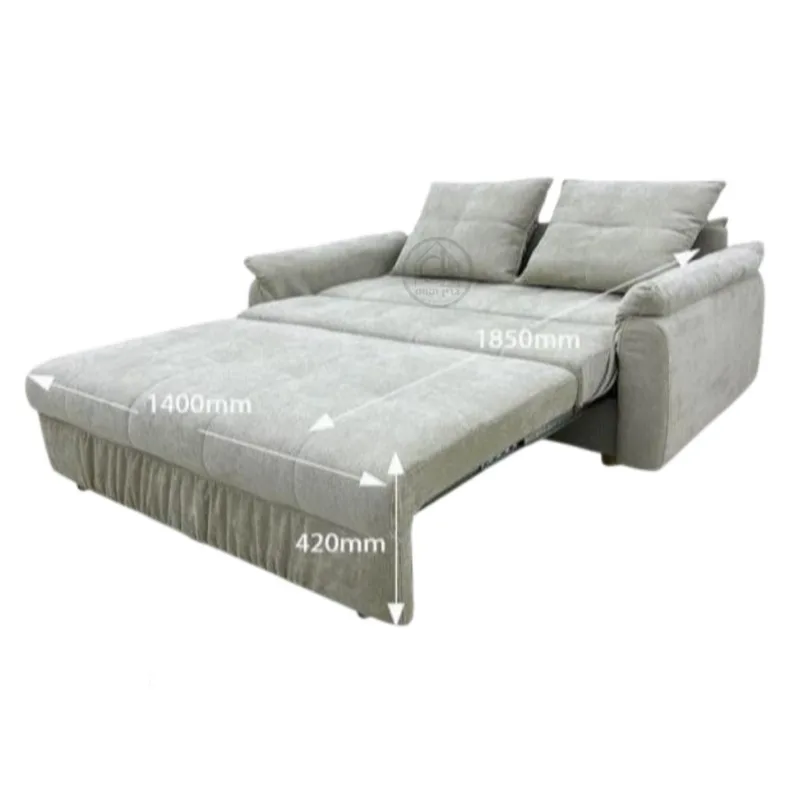 ספה נפתחת למיטה זוגית 140 ס"מ עם מנגנון פתיחה קל ונוח, פתרון אידאלי לסלון, חדר אורחים או דירות קטנות. ספת אירוח פרקטית המשלבת ישיבה נוחה ביום ומיטה רחבה לשינה בלילה.