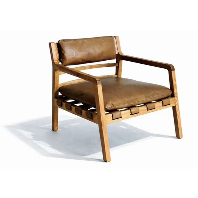 כורסה בעיצוב כפרי-מודרני בשילוב עץ מלא ועור (PU)