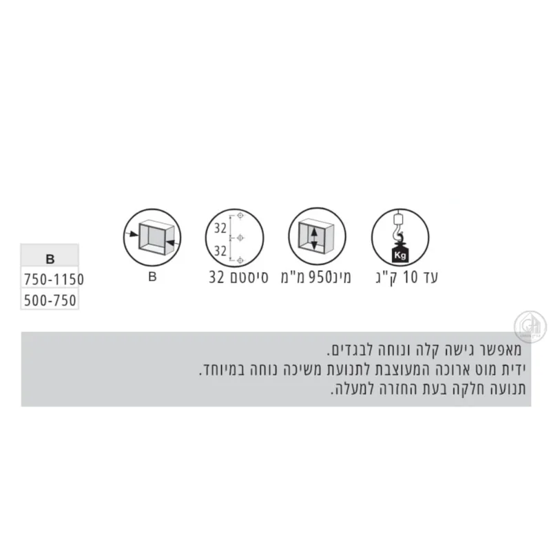 - דגם 300B – מתאים לרוחב ארון: 750–500 מ"מ
