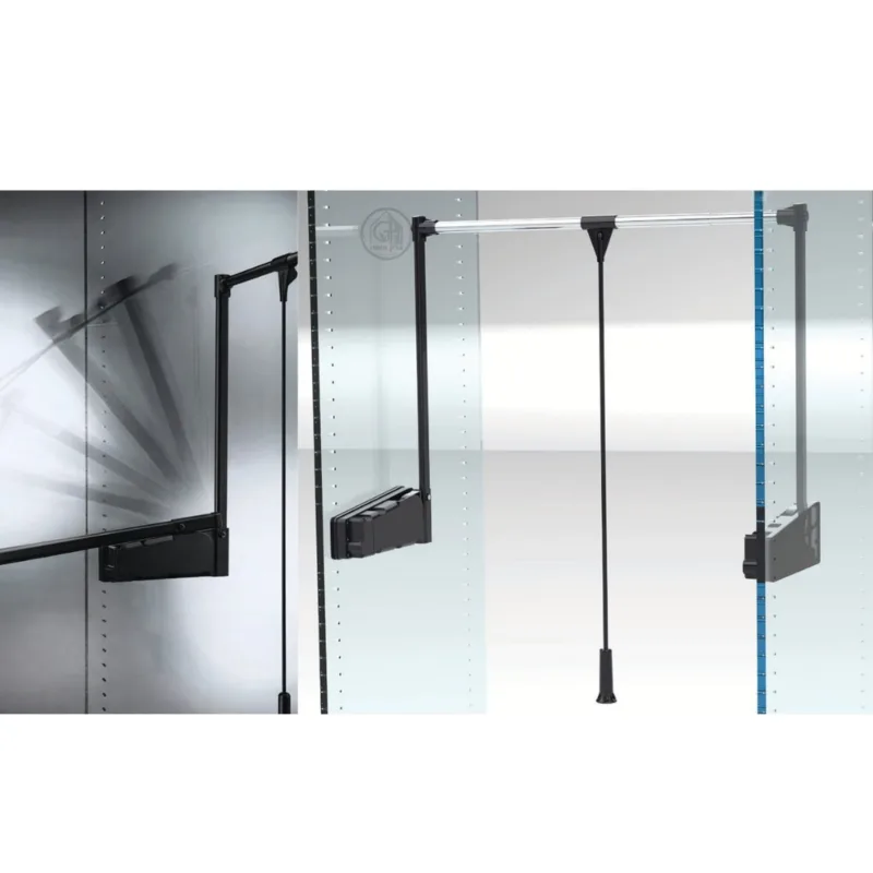 מתקן איכותי להורדת קולבים המיועד לארונות בגדים, ומאפשר גישה נוחה לבגדים הממוקמים בגובה. המנגנון פועל בצורה חלקה, כולל ידית אחיזה ארוכה לנוחות שימוש, ומותאם לעומס של עד 10 ק"ג. פתרון אידיאלי לארונות גבוהים, לחדרי ארונות ולשיפור הנגישות בחלל.