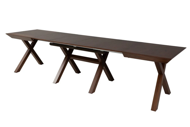 שולחן אוכל בעיצוב נקי ומרשים, קומפקטי במיוחד במצב סגור – אך נפתח לאורך מרבי של 3.50 מטר! עשוי כולו עץ פורניר אגוז בגימור איכותי, עם פלטה עליונה בגוון אגוז ורגל איקס מעוצבת . רגל השולחן נפתחת וזזה יחד עם ההגדלה, לשמירה על יציבות ונוחות מרבית.