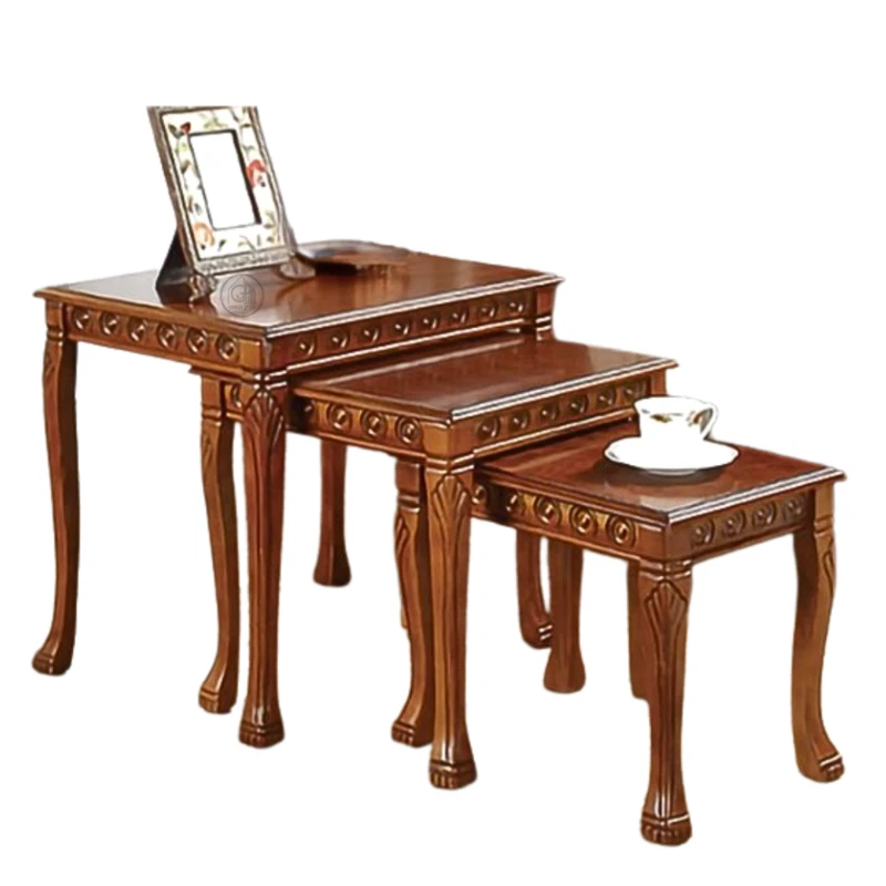 שלישיית שולחנות בעיצוב איטלקי קלאסי – גילופים דקורטיביים בעץ מלא | דגם HSC050