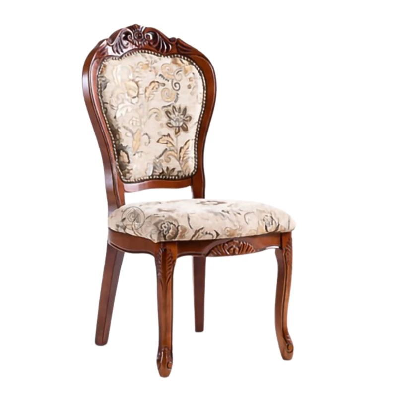 כיסא בעיצוב איטלקי קלאסי, עשוי עץ מלא בגימור איכותי, עם ריפוד בד פרחוני יוקרתי בגוונים חמים. סגנון הוינטג' המוקפד משלב בין נוחות מרבית לנוכחות עיצובית עשירה, והידיות המעוצבות מוסיפות תחושת ישיבה של כורסה. הבד נעים למגע וקל לניקוי, והכיסא מתאים לשילוב עם שולחנות עץ בגוון אגוז איטלקי.