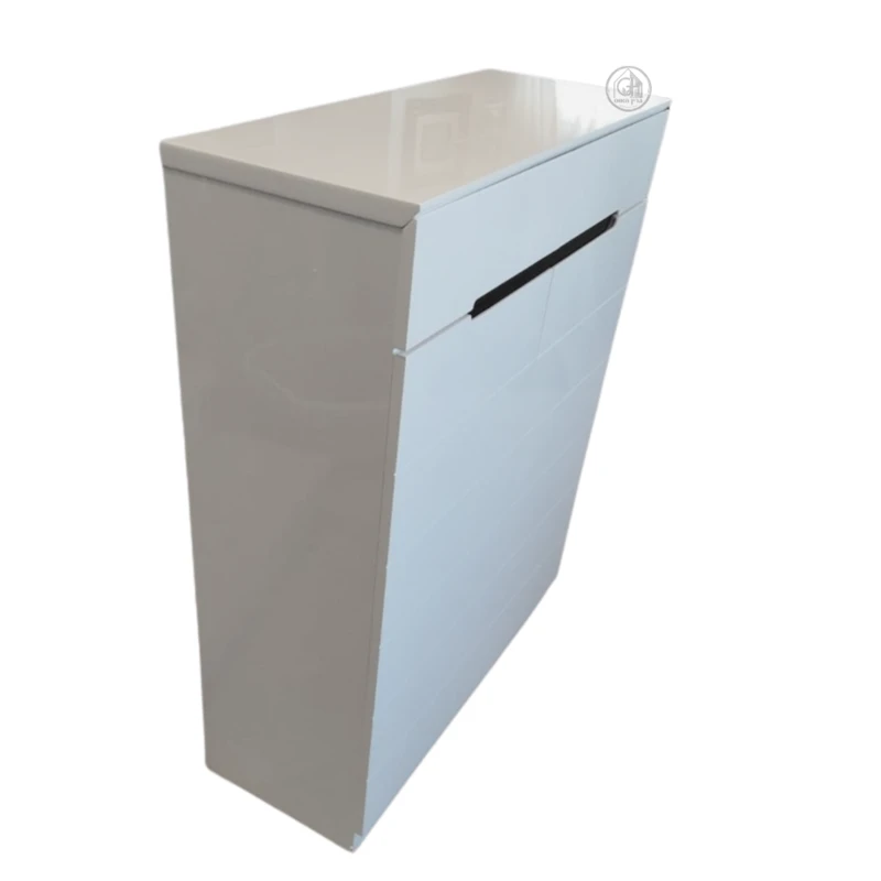 ארון נעליים בעיצוב מוקפד ונקי, המשדר תחושת יוקרה ואלגנטיות. הארון כולל שתי דלתות חזית בגימור אפוקסי מבריק, הנפתחות לחשיפה של חלל פנימי מרווח ומאורגן. בפנים תמצאו מדפים אופקיים רחבים לאחסון נעליים בצורה מסודרת, לצד שתי מגירות עליונות נוחות לשימוש יומיומי – לאביזרים, מפתחות או פריטים קטנים. ארון נעליים בעיצוב מודרני ונקי המשתלב בכל חלל.