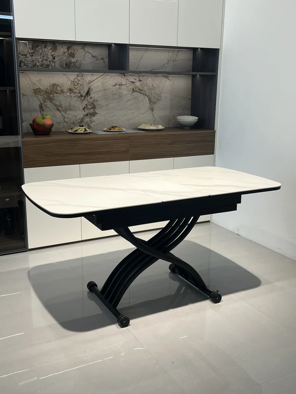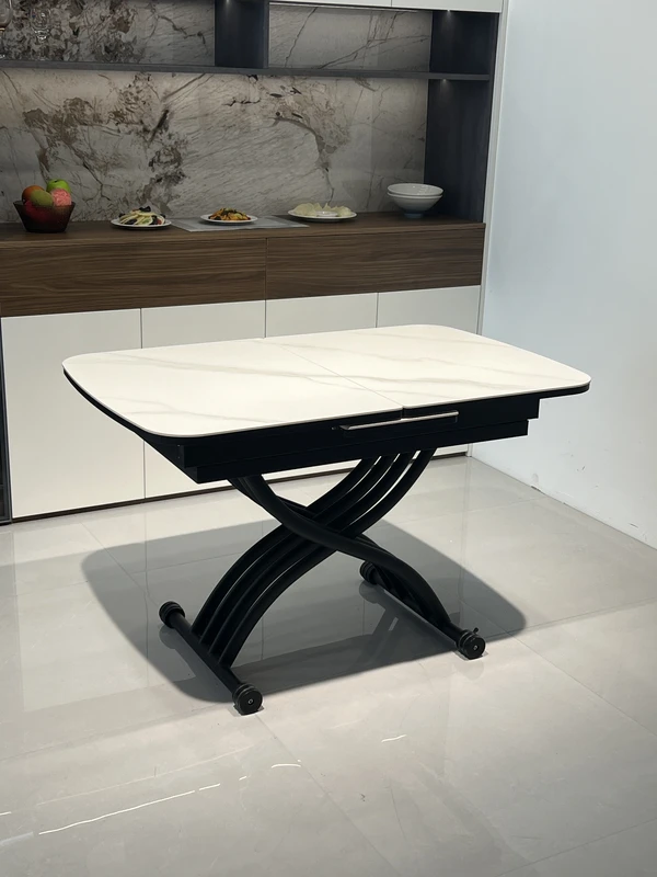 שולחן סלון קרמי מעוצב ואיכותי, שנפתח בקלות לשולחן אוכל מרווח ומתאים לאירוח מושלם.