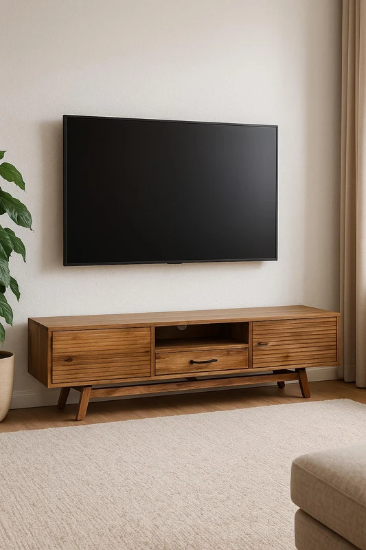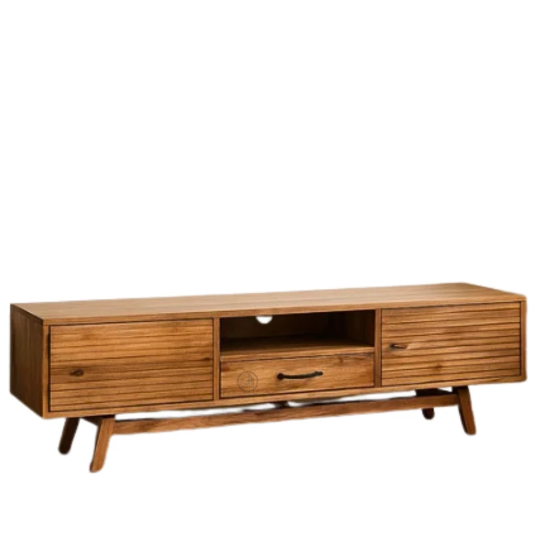החזיתות בעיצוב חריצים עדין מוסיפות טאץ' מודרני ונקי. כולל מגירה עם מסילות אחסון שקטות ונוחות, לצד מדף פתוח לשילוב פריטים דקורטיביים או מכשירי מדיה.