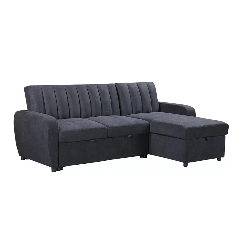 הריפוד עשוי בד פוליאסטר רחיץ ונעים במיוחד למגע, והגב מעוטר פסי נוי אנכיים עמוקים למראה אלגנטי. השלדה מחוזקת בשילוב של ברזל ועץ אקליפטוס מלא, והפינה מתחלפת – להרכבה בצד ימין או שמאל בהתאם לחלל.