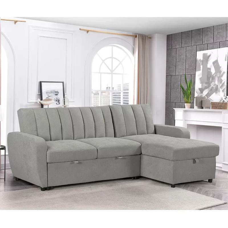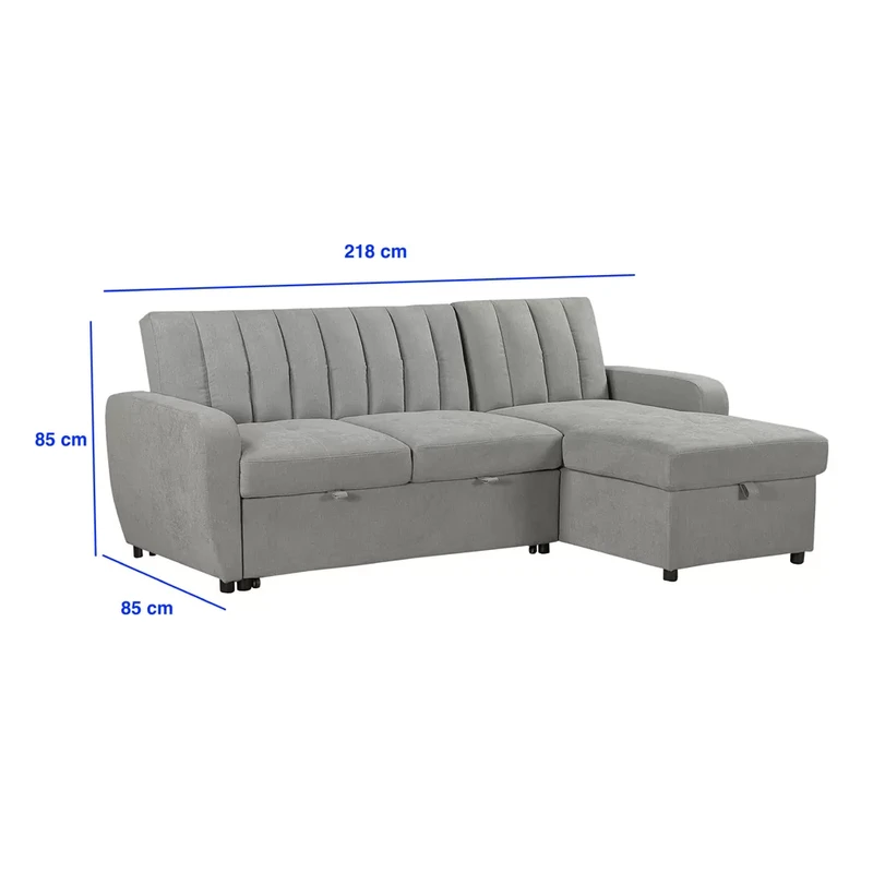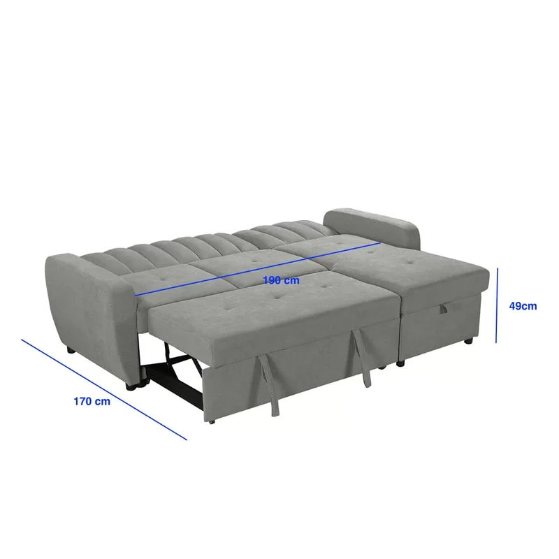 מערכת ישיבה פינתית בעיצוב עכשווי, נפתחת למיטה זוגית בגודל 190×170 ס"מ – פתרון אידיאלי לאירוח ולשימוש יומיומי. המושבים כוללים קפיצי כיס מבודדים, המספקים תמיכה אורתופדית, נוחות יוצאת דופן ועמידות לאורך זמן. ביחידת השזלונג משולב ארגז מצעים מרווח ונגיש, ובקדמת הספה – מגירה נשלפת על גלגלים המאפשרת פתיחה חלקה ומהירה למצב מיטה.
