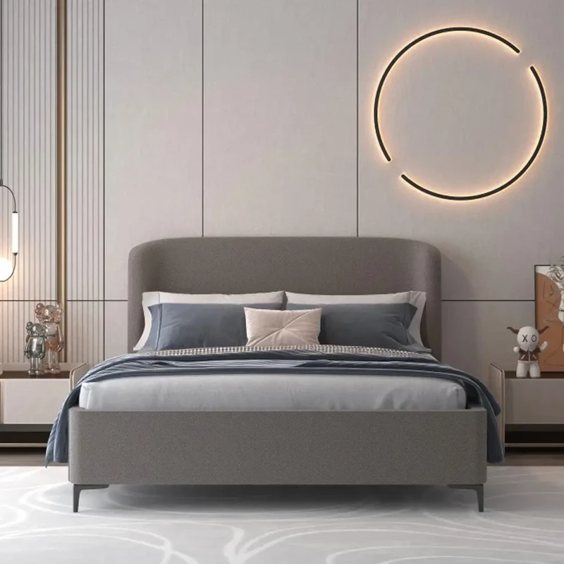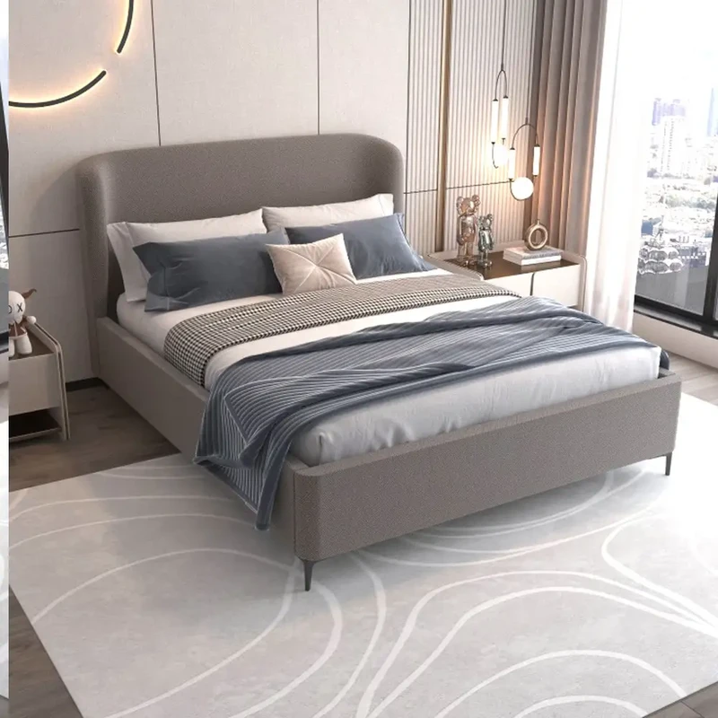 - ראש מיטה מרופד בעיצוב מעוגל בקצוות, מעניק מראה הרמוני ורך