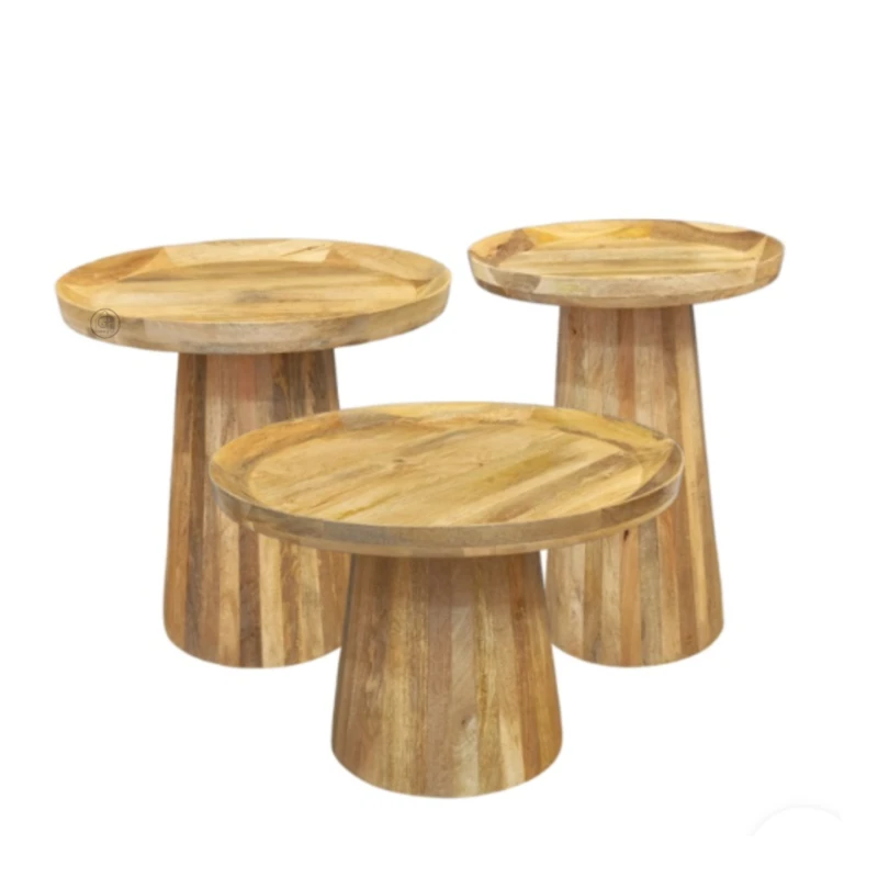 סט 3 שולחנות סלון עגולים | עץ מנגו מלא