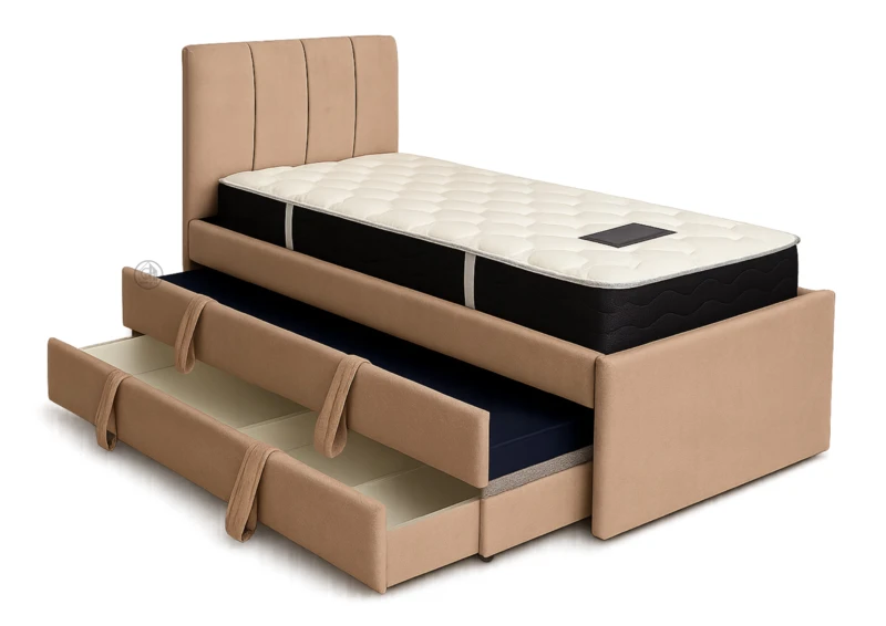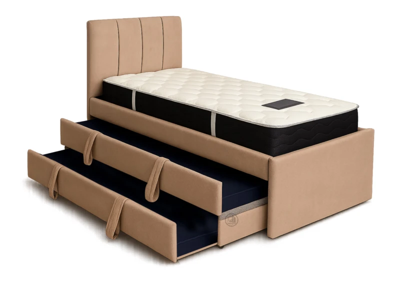 מיטה בעיצוב ייחודי המשלבת נוחות, אחסון ואירוח – הכל במקום אחד. דגם "פירמידה" מציע פתרון מושלם לחדרי ילדים, עם מגירות אחסון גדולות, מיטת חבר נשלפת וגלגלים נסתרים שמעניקים מראה נקי ואלגנטי. המיטה מרופדת בבד איכותי ונעימה למגע, ומתאימה לשימוש יומיומי לאורך שנים.