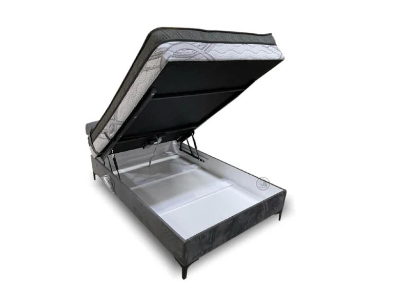 המיטה מרופדת בבד ארוג איכותי, נעים למגע ועמיד לאורך זמן. ארגז המצעים המובנה נפתח בקלות ומציע פתרון אחסון חכם ונגיש, מבלי לפגוע באסתטיקה או בנוחות.