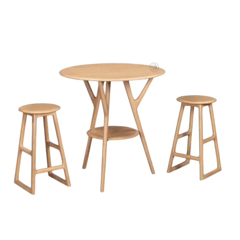 שולחן בר עגול בעיצוב נקי ומודרני, עשוי עץ מלא בגימור איכותי. מתאים לחללי אירוח, פינות אוכל קטנות או מטבחי בר – ומשדר חמימות, יציבות וסטייל טבעי.