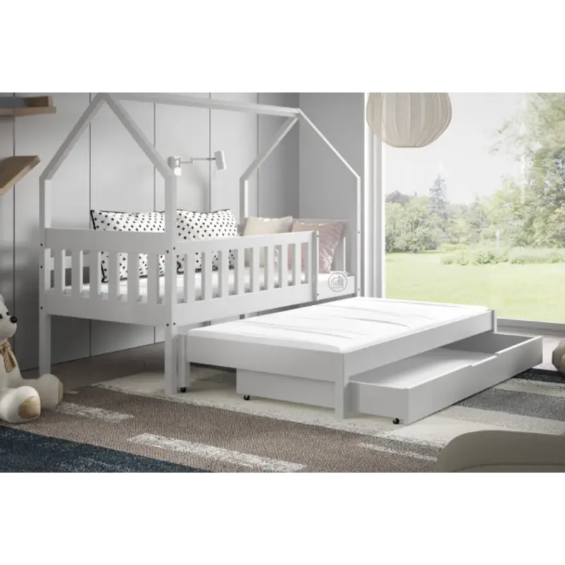 מיטה מעוצבת בצורת בית, תוצרת אירופה, עשויה מעץ מלא באיכות גבוהה במיוחד.