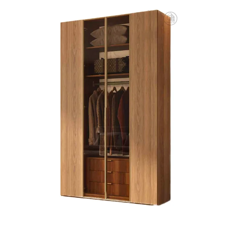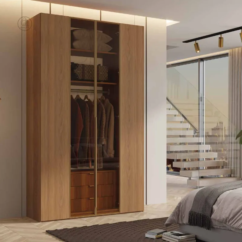 ארון פתיחה מעוצב 4 דלתות - 2 דלתות עץ ו- 2 דלתות זכוכית מחוסמת במסגרת אלומיניום, המעניקות לו מראה אלגנטי ונוכחות מרשימה בחלל.