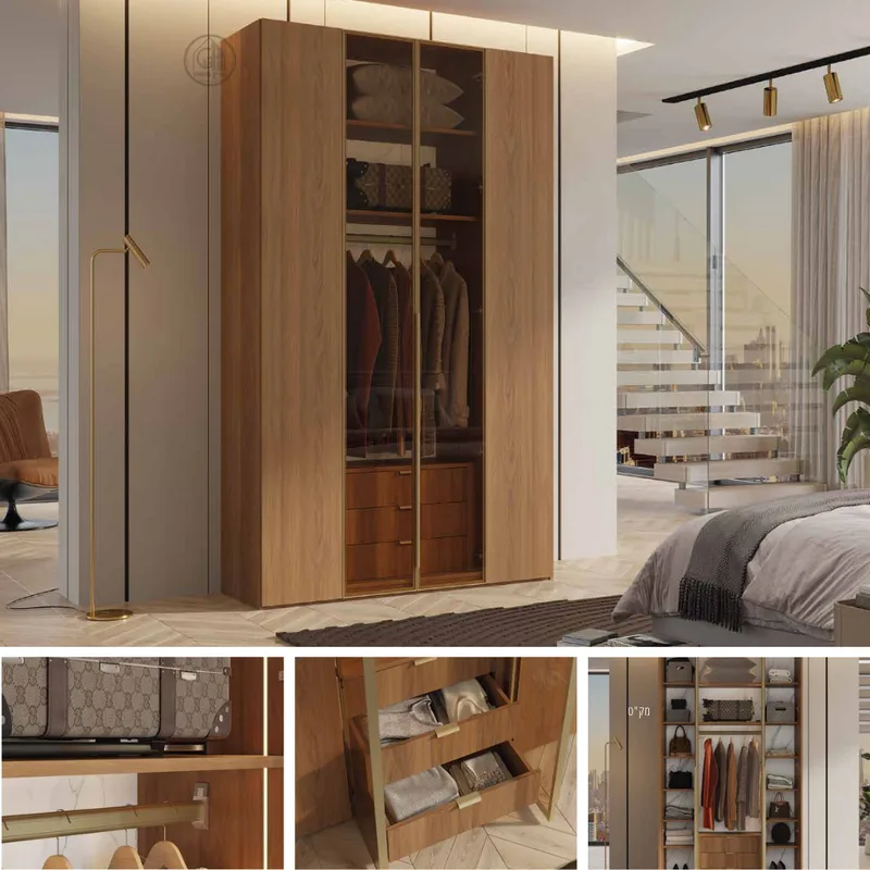 - חלוקה פנימית: מדפים, מגירות ומוטות תלייה