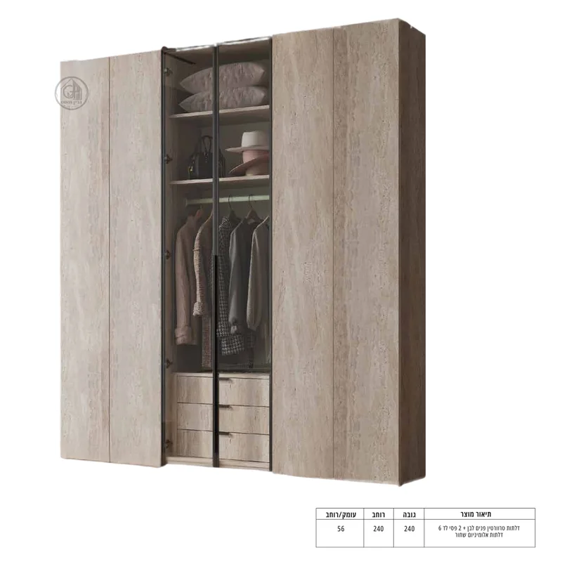 רוחב: 160 ס"מ | עומק: 56 ס"מ | גובה: 240 ס"מ